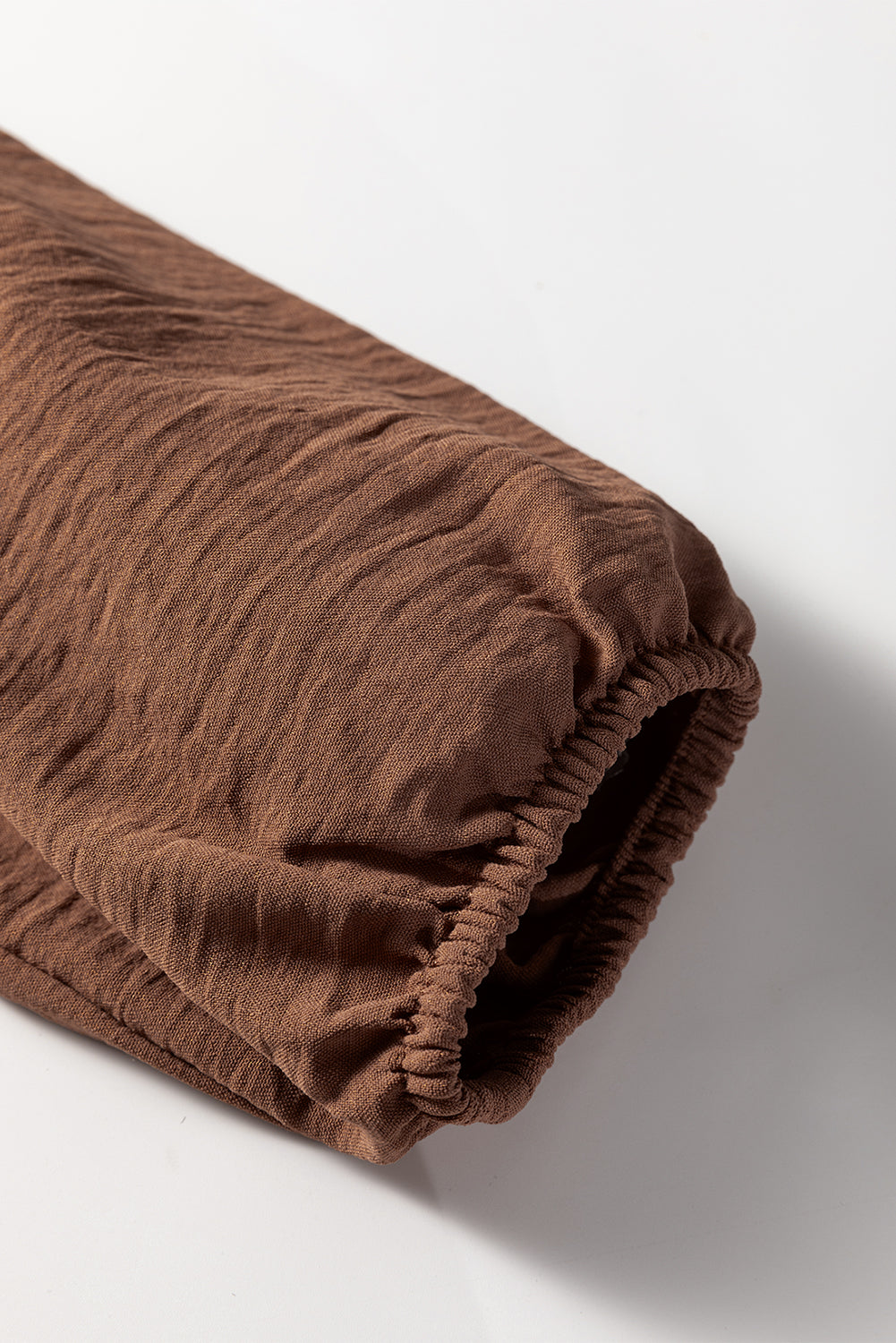Chestnut Floral Patchwork Detail Notched Neck Long Sleeve Maxi Dress