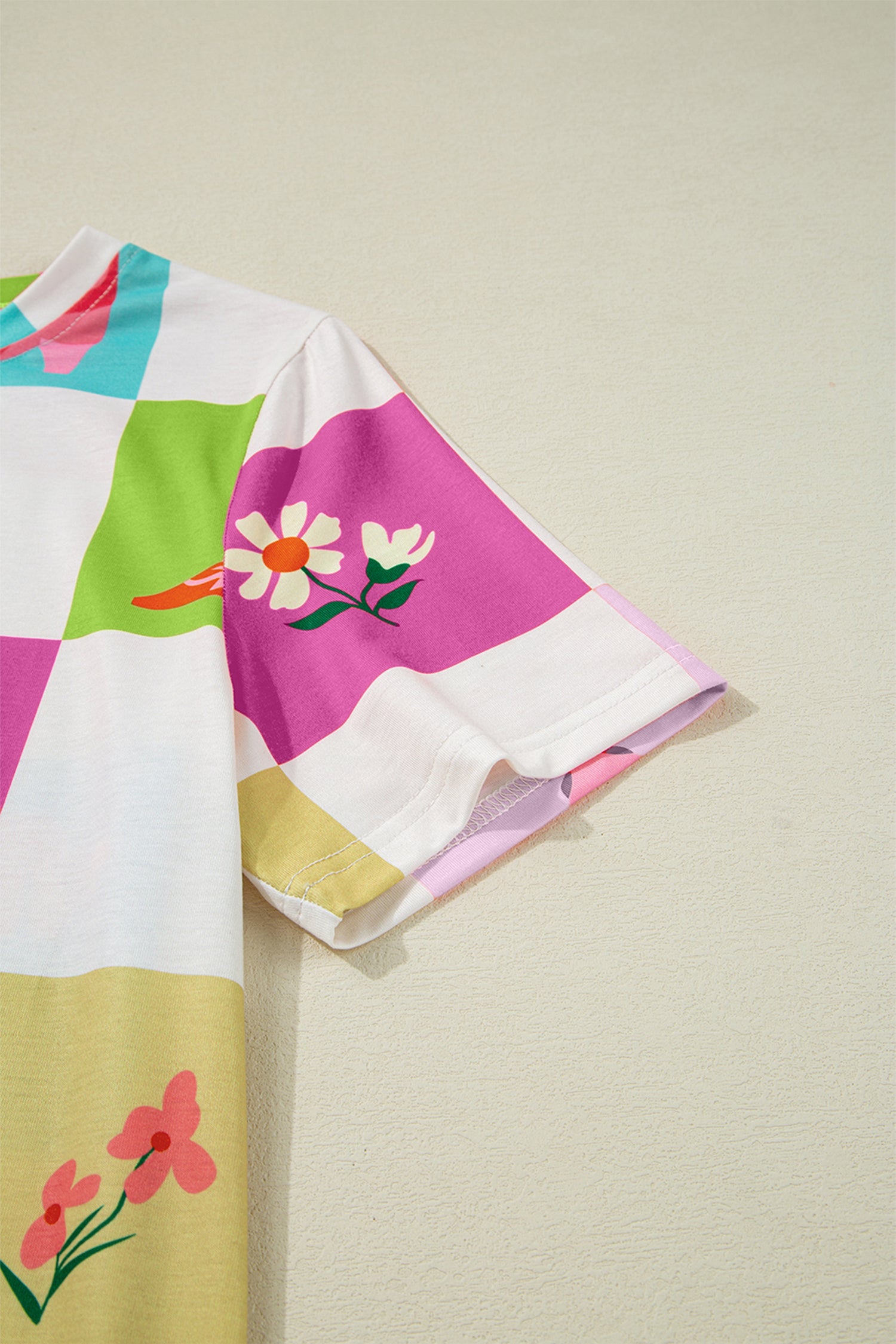 • T-shirt élégant à col rond avec un motif à carreaux tendance.
