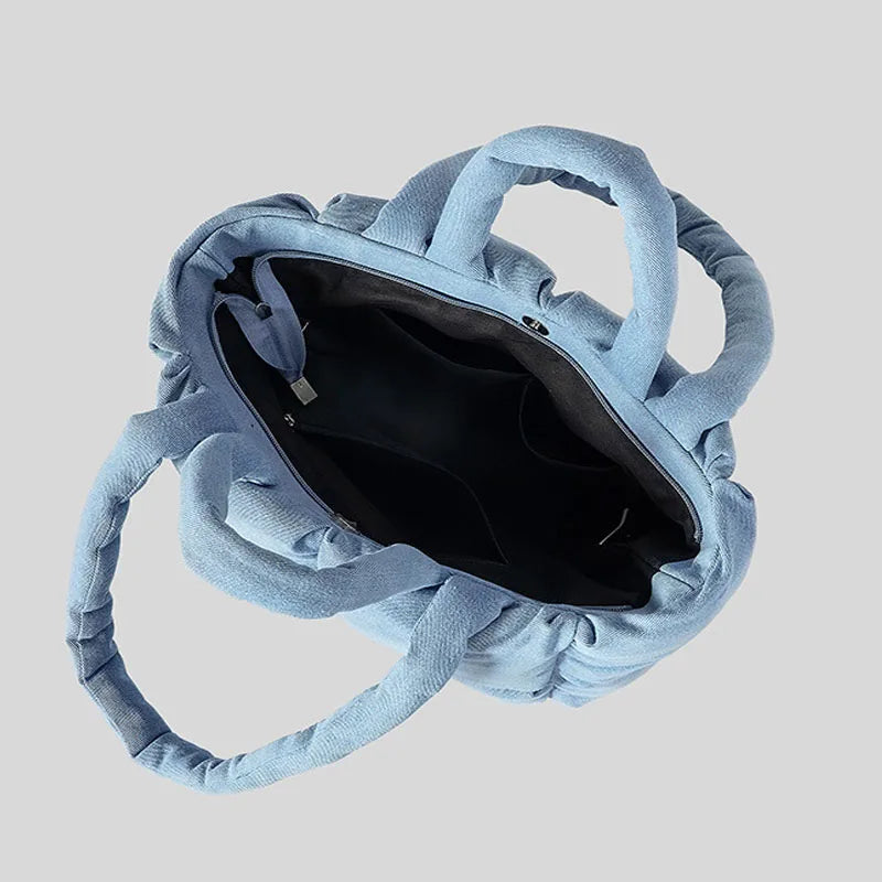 Padded Denim Puffer Shoulder Tote Bag for Women