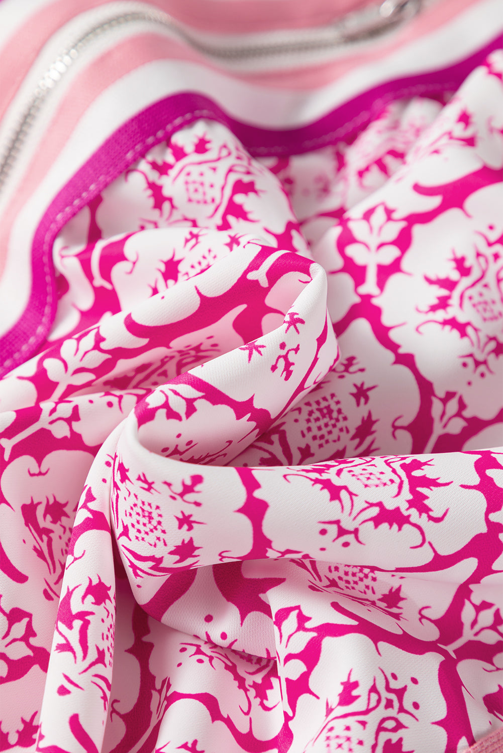 Pink Western Print Zipped Collar Short Sleeve Summer Blouse Top